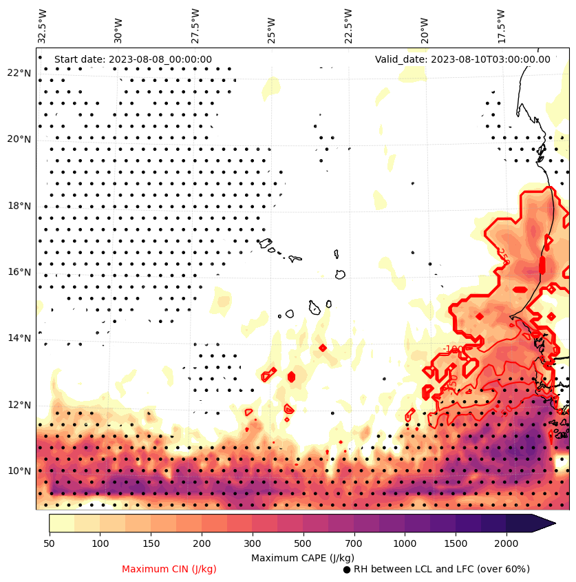 - Maximum CAPE (J/Kg)