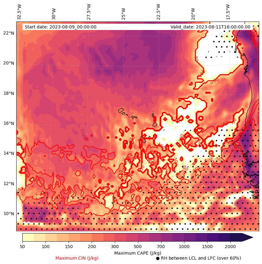 • Maximum CAPE (J/Kg)