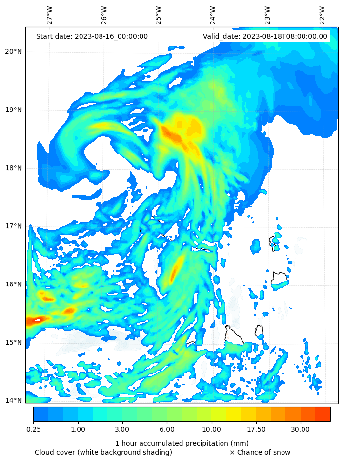 - Snow mixing ratio (g kg¯¹)