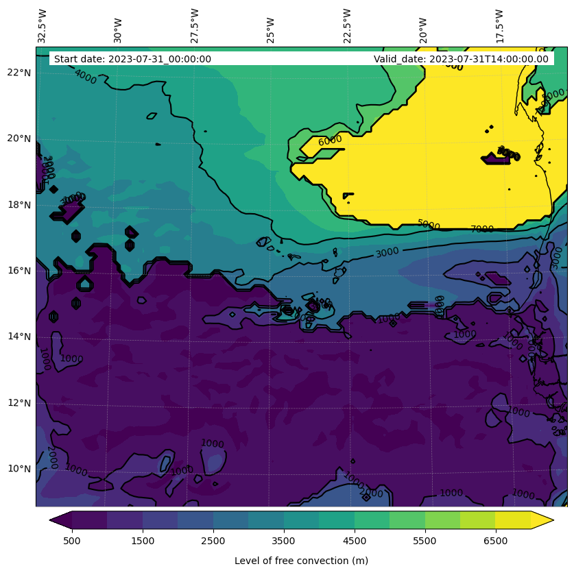 - Level of free convection (m)