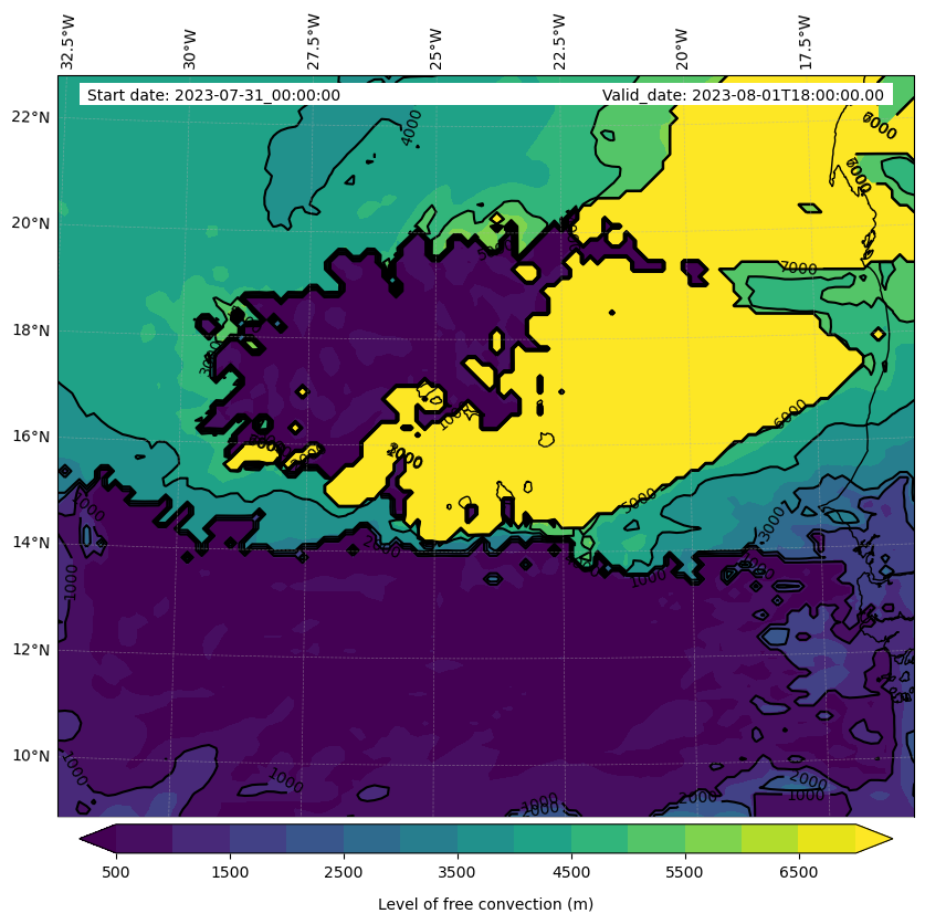 - Level of free convection (m)