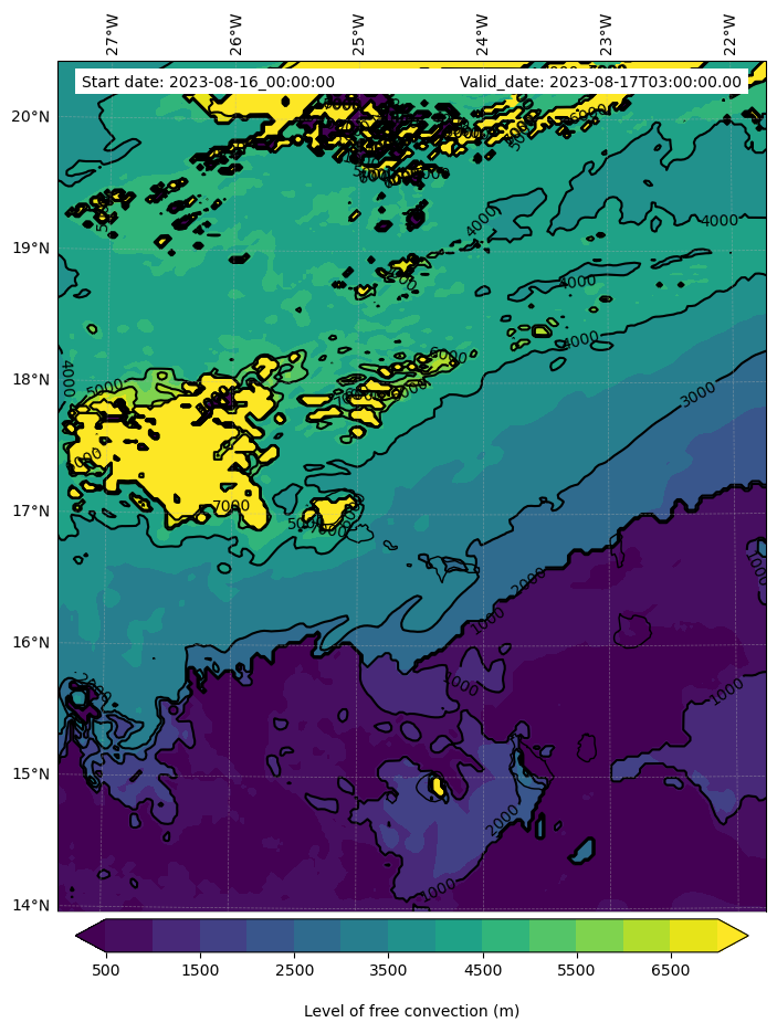 - Level of free convection (m)
