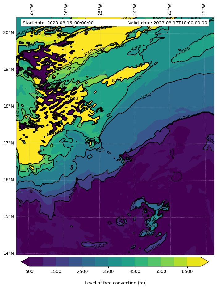 - Level of free convection (m)