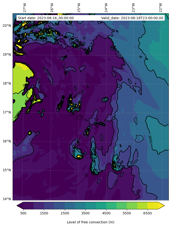 • Level of free convection (m)