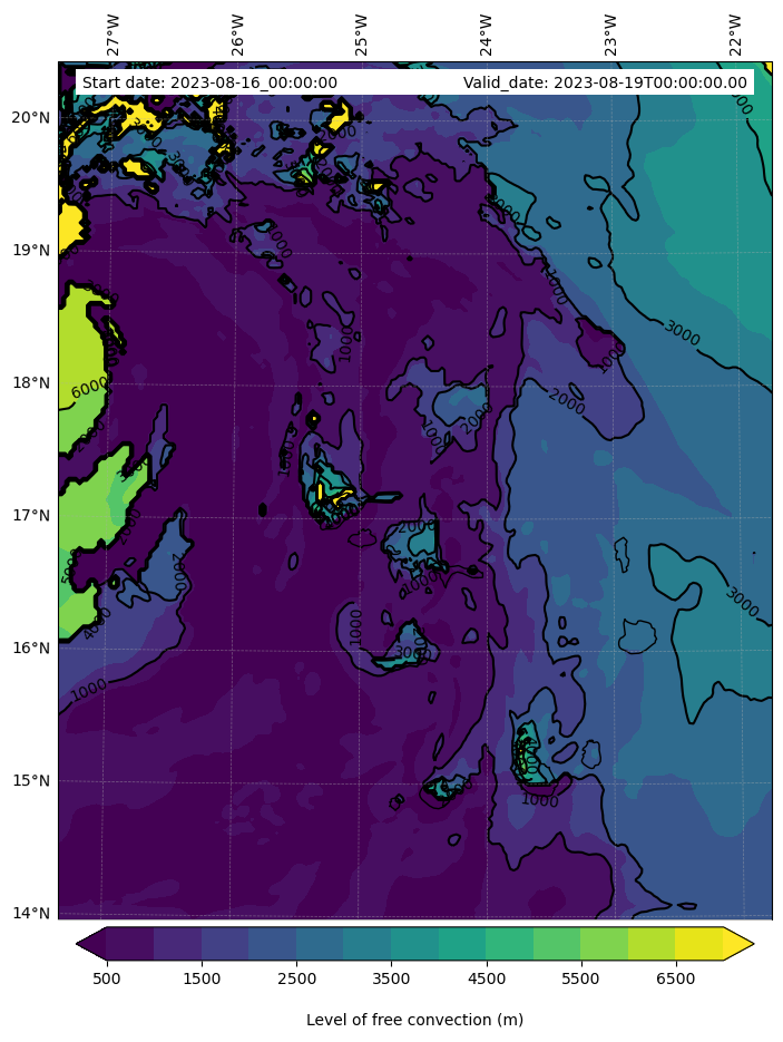 - Level of free convection (m)