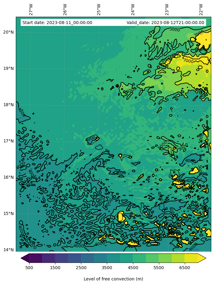 - Level of free convection (m)