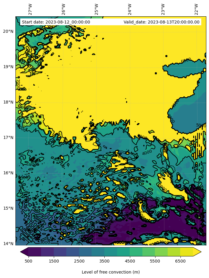 • Level of free convection (m)