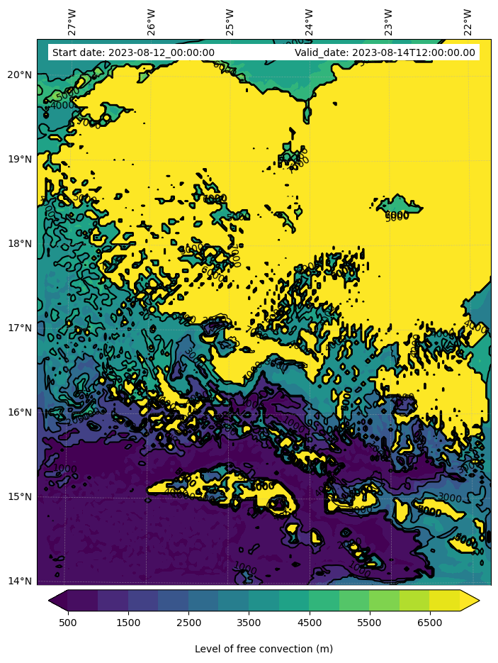 - Level of free convection (m)