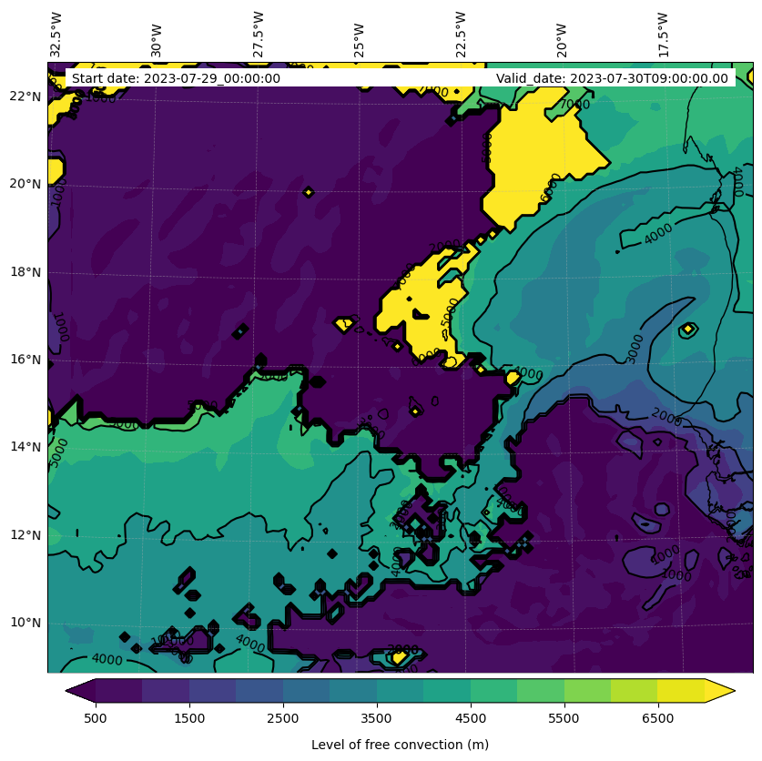 - Level of free convection (m)