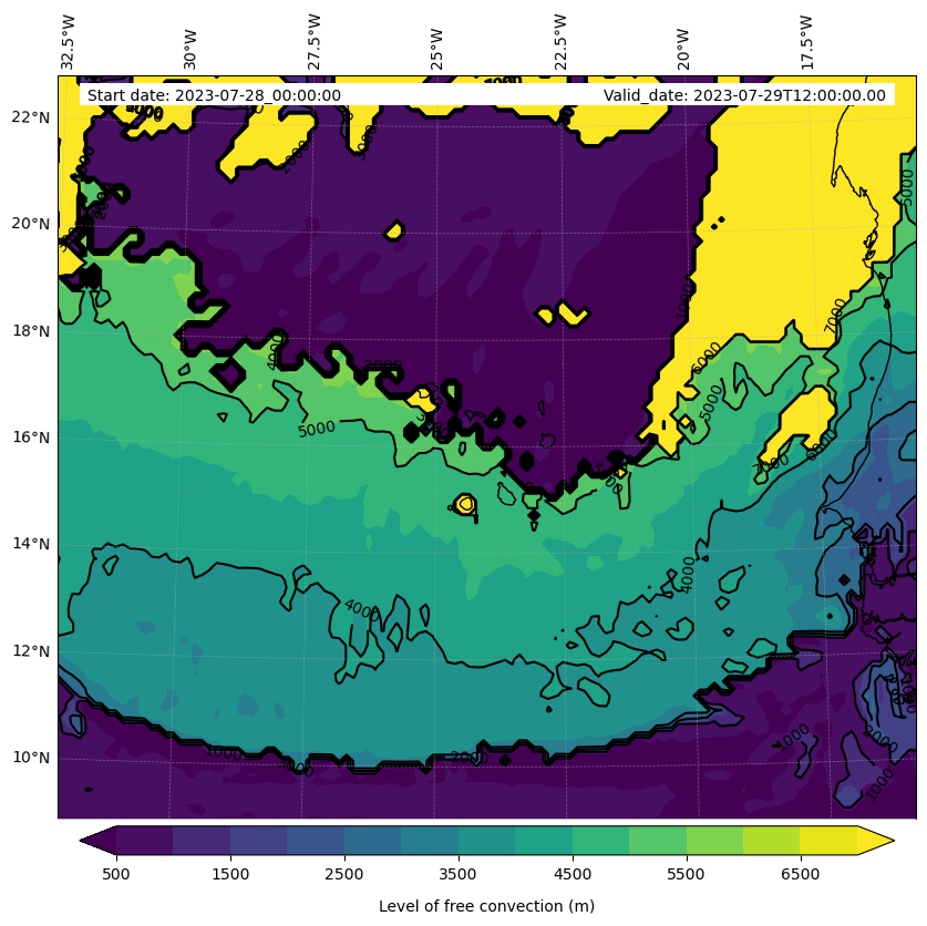 - Level of free convection (m)