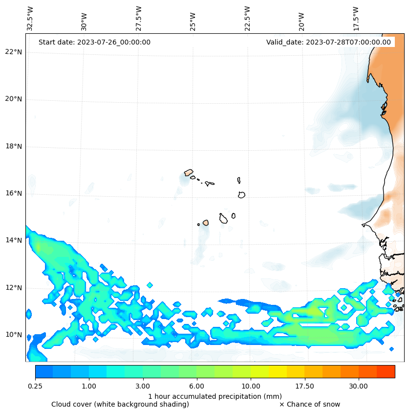 - Snow mixing ratio (g kg¯¹)