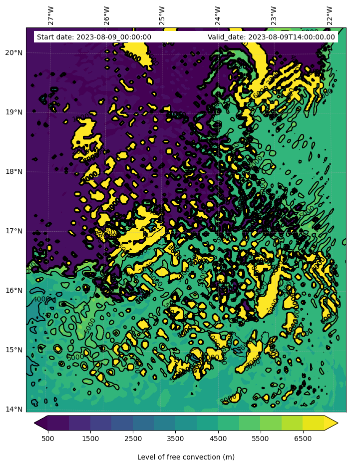 - Level of free convection (m)