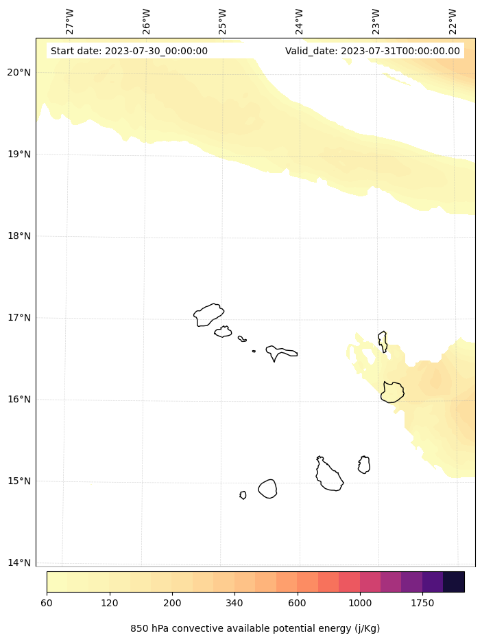 - Maximum CAPE (J/Kg)