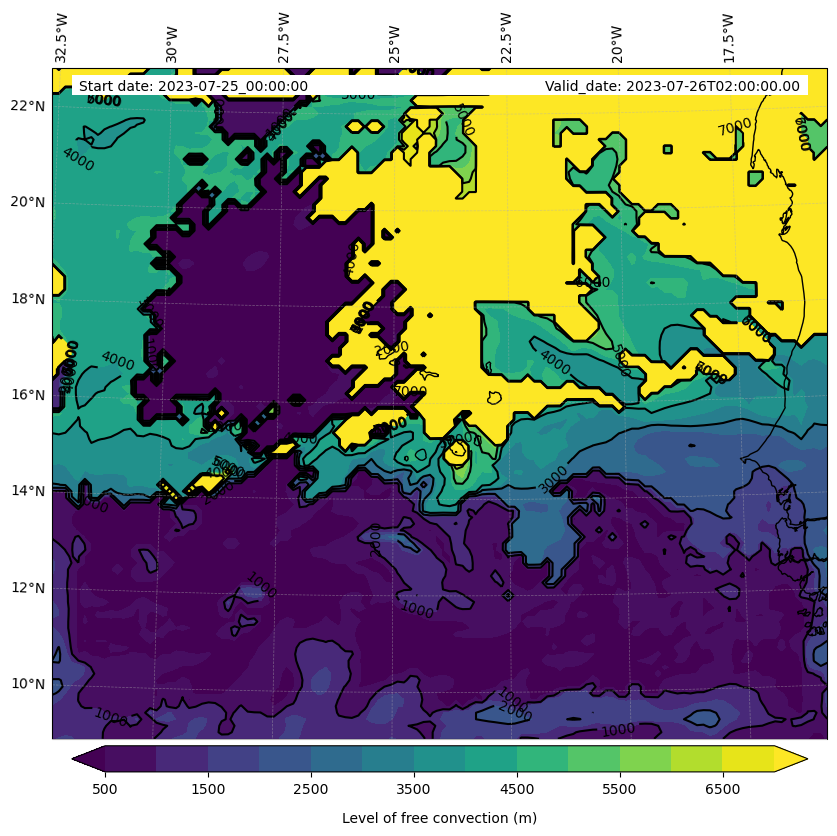 - Level of free convection (m)