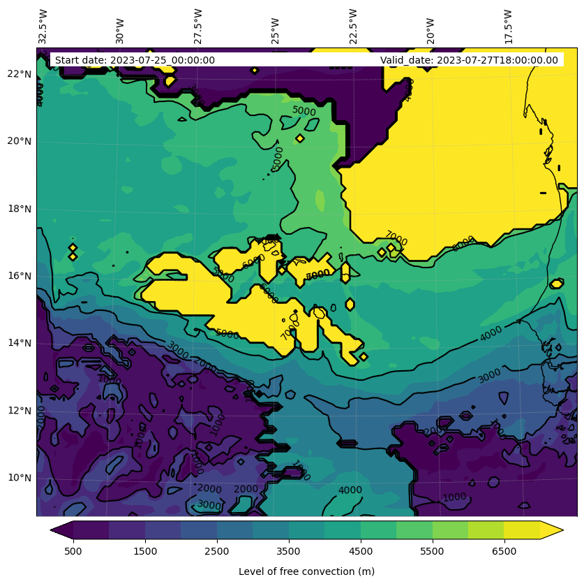 - Level of free convection (m)