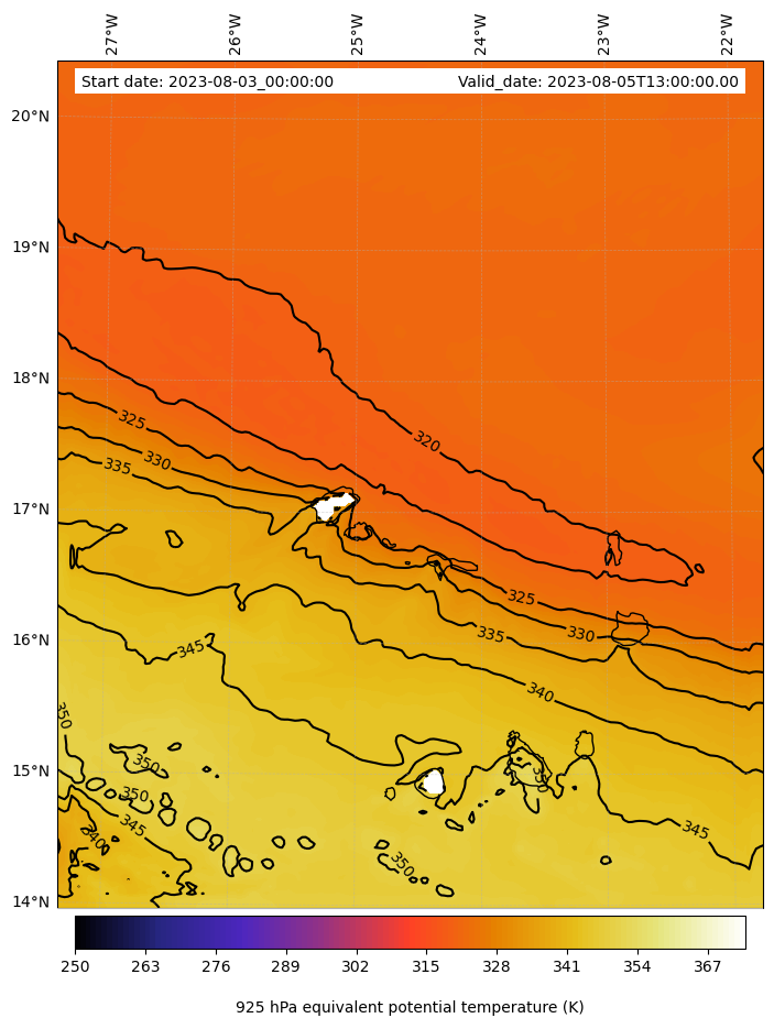 - Equivalent Potential Temperature (K)
