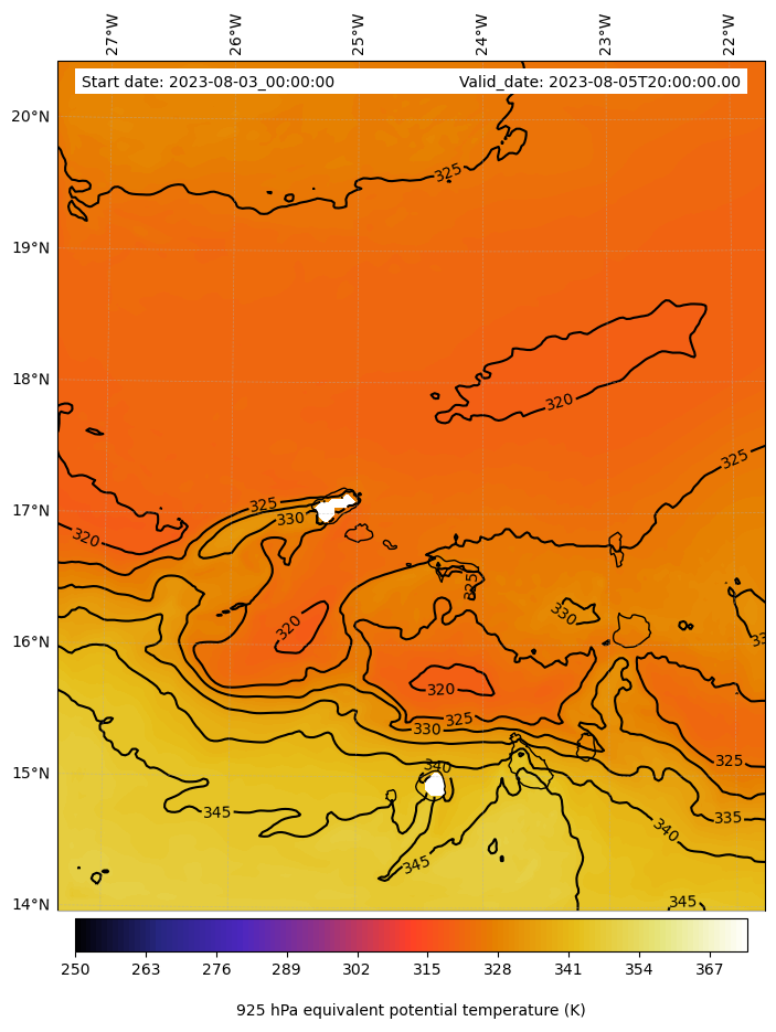 - Equivalent Potential Temperature (K)