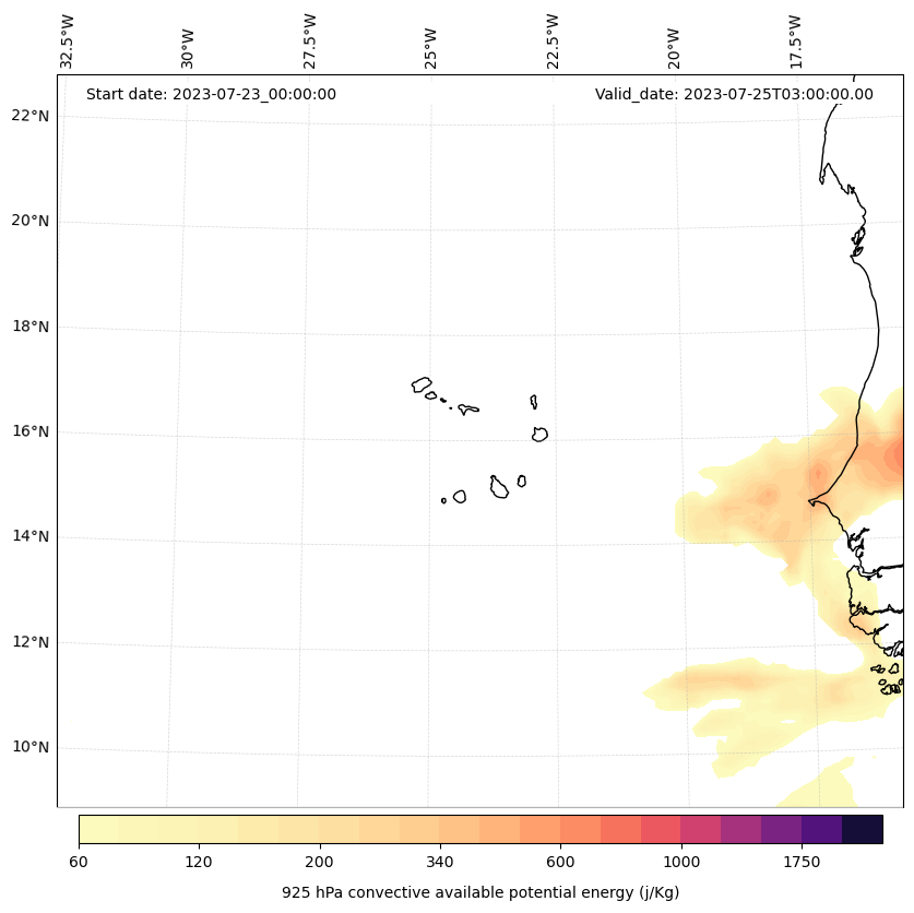 - Maximum CAPE (J/Kg)