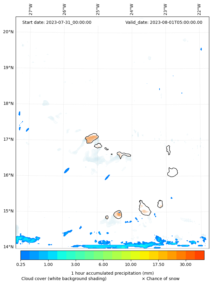 - Snow mixing ratio (g kg¯¹)