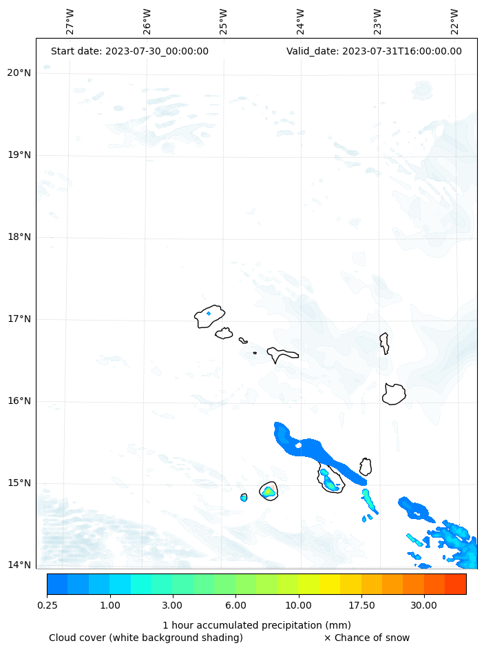 - Snow mixing ratio (g kg¯¹)