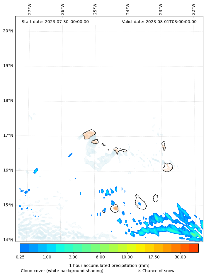 - Snow mixing ratio (g kg¯¹)