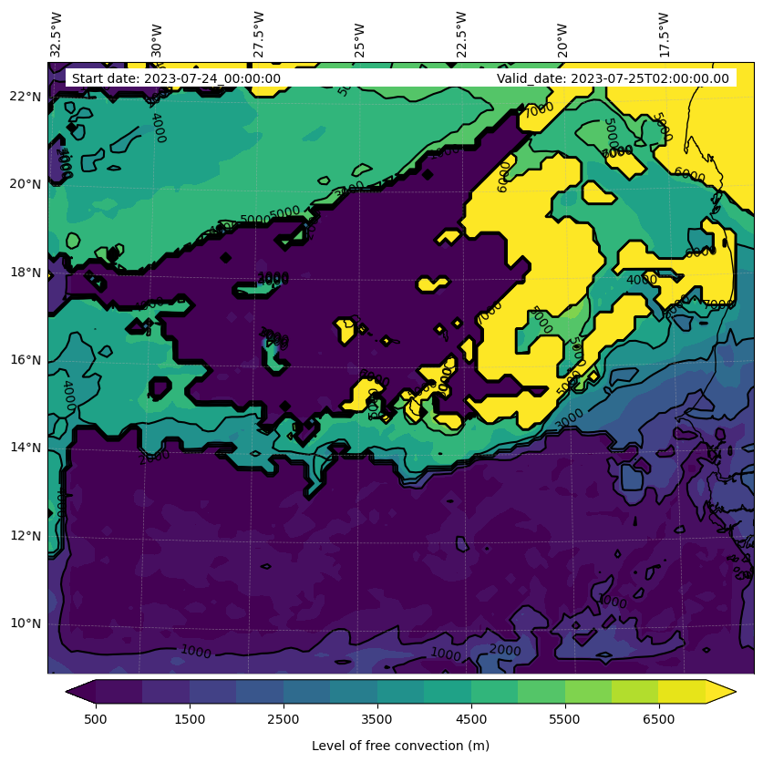 - Level of free convection (m)