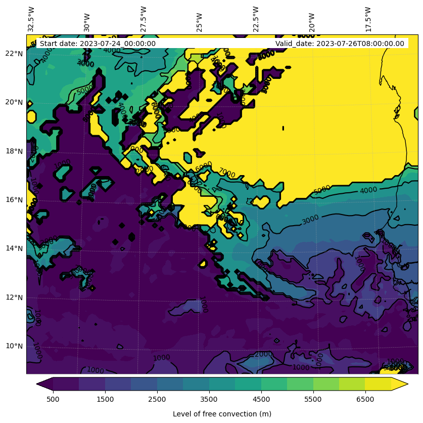 - Level of free convection (m)