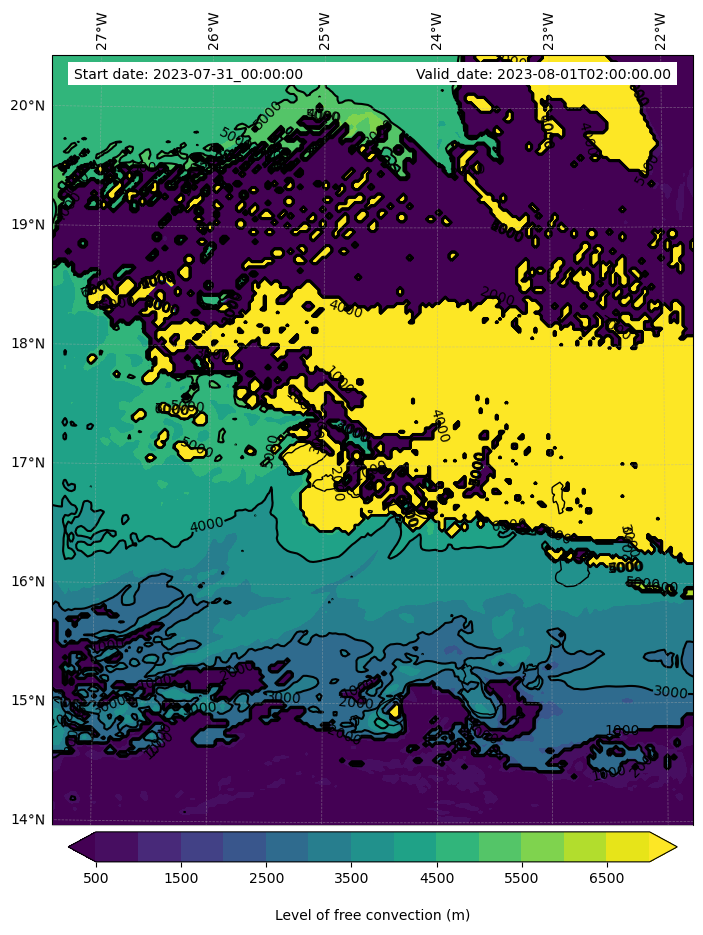 - Level of free convection (m)