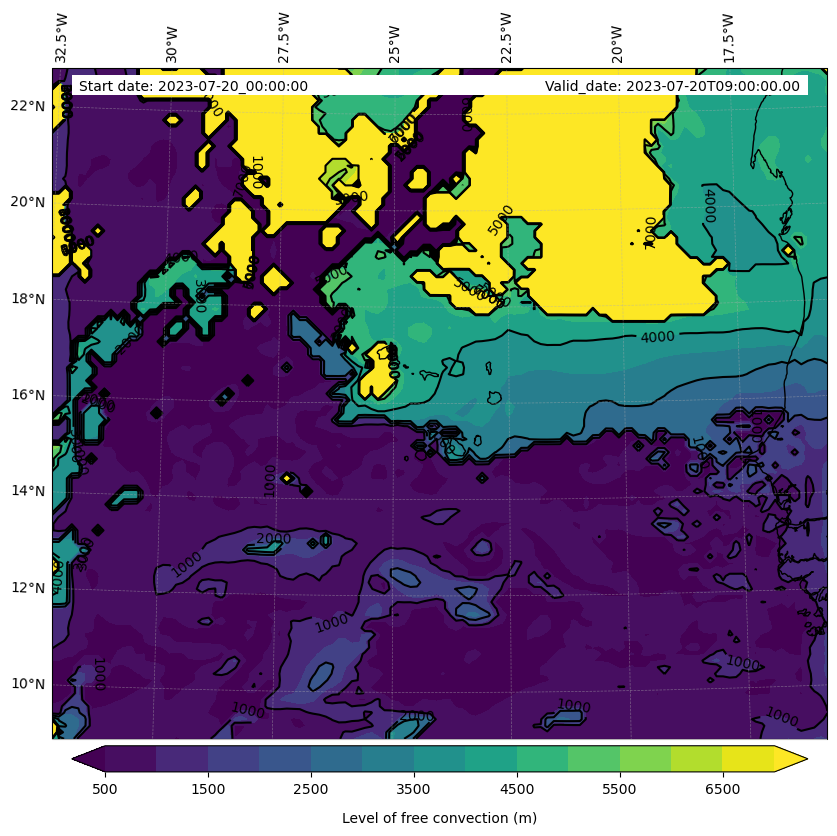 - Level of free convection (m)