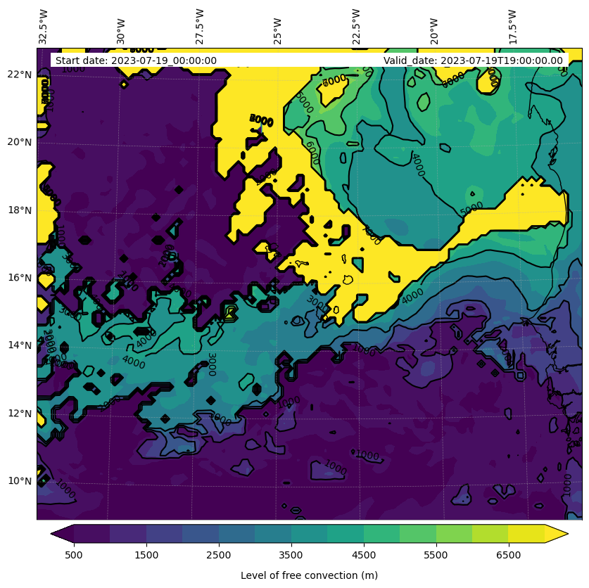 - Level of free convection (m)