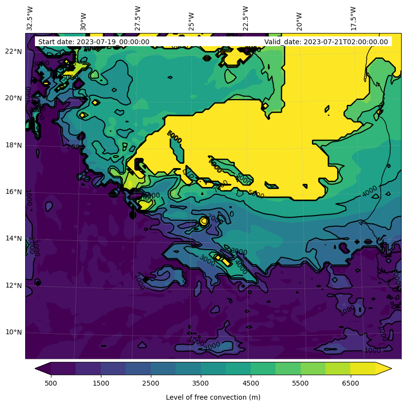 - Level of free convection (m)