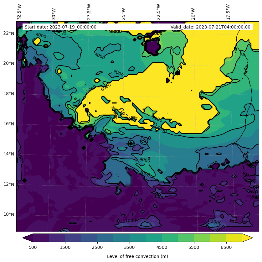 - Level of free convection (m)