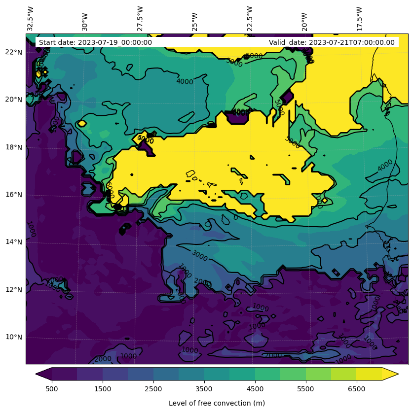 - Level of free convection (m)