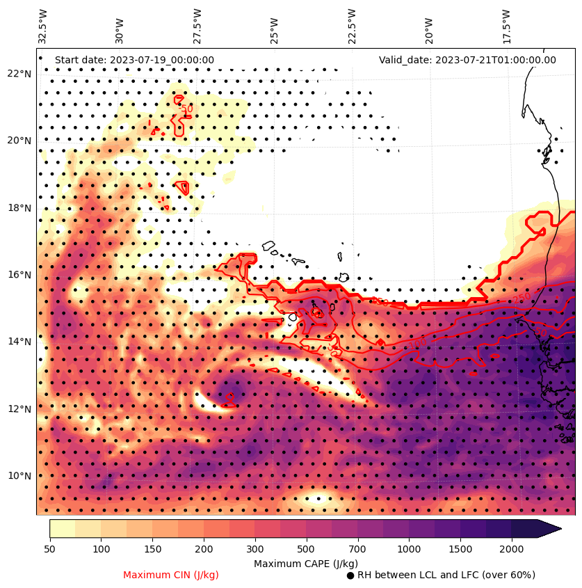 • Maximum CAPE (J/Kg)