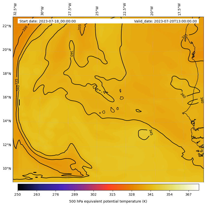 - Equivalent Potential Temperature (K)