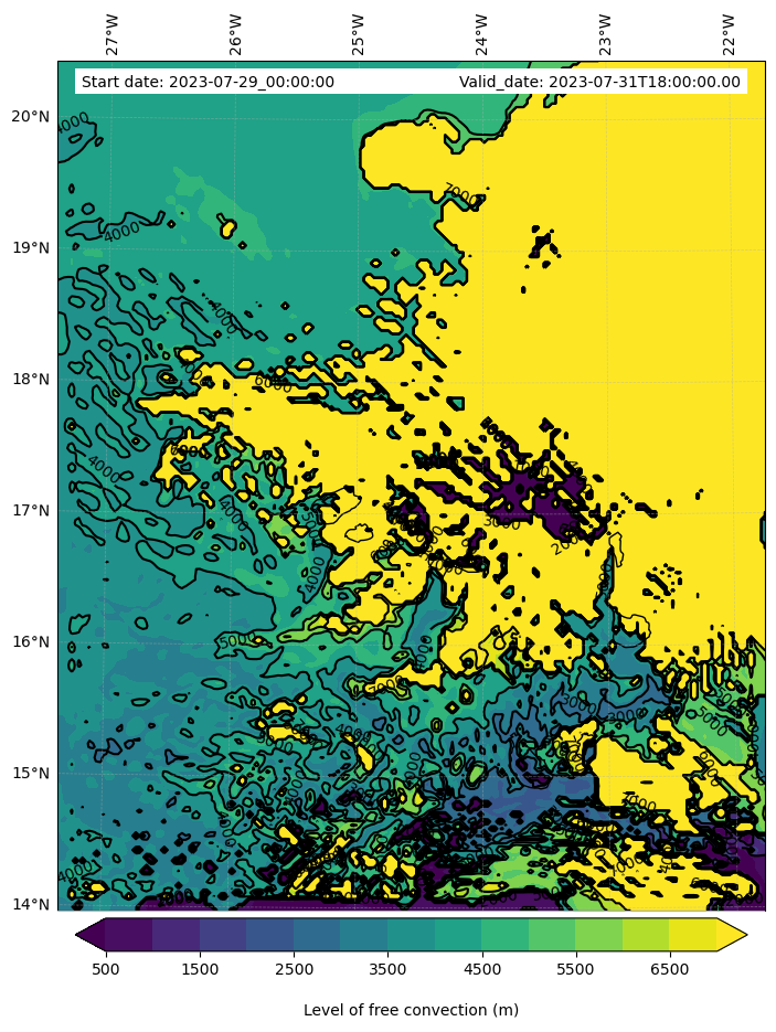 - Level of free convection (m)