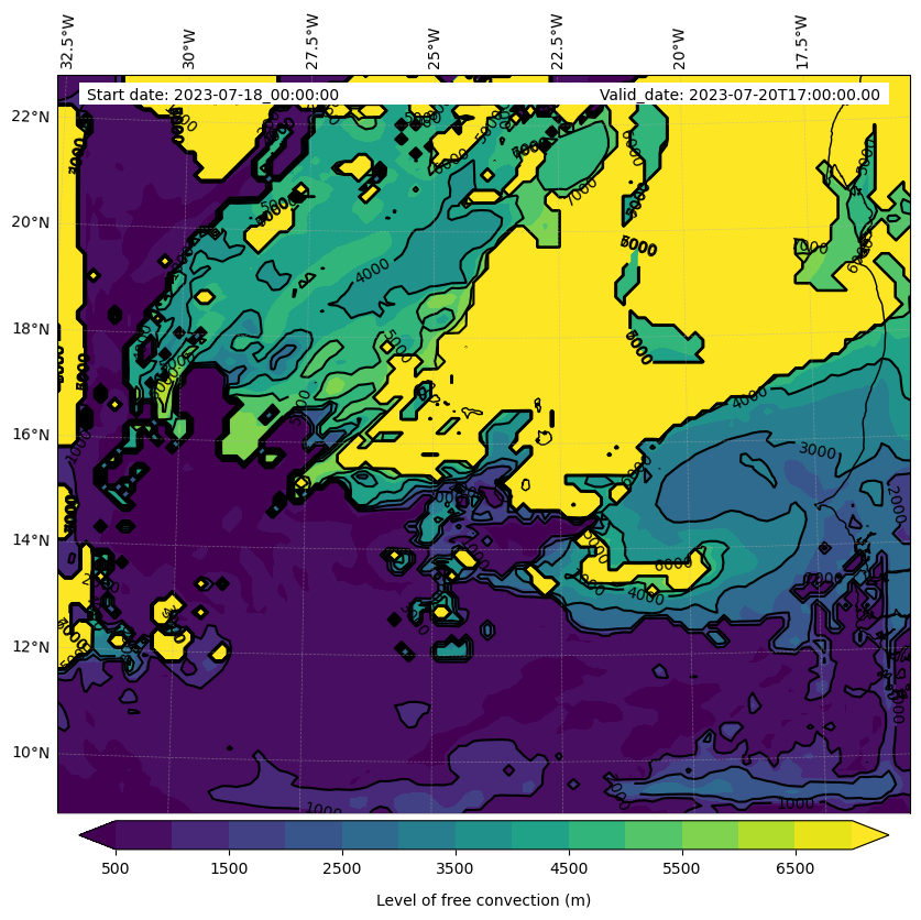 - Level of free convection (m)