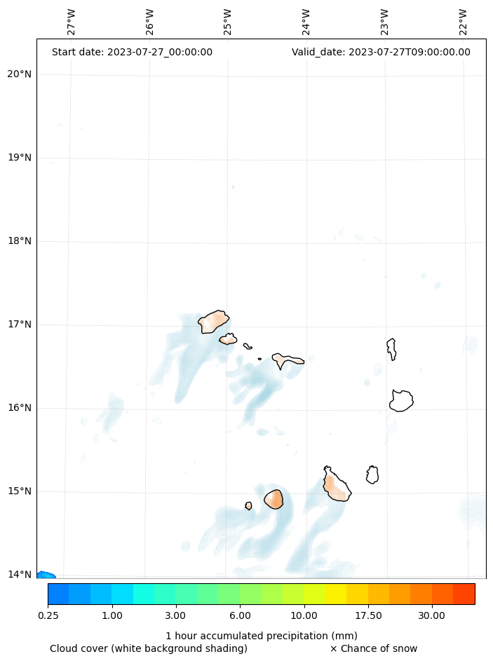 - Snow mixing ratio (g kg¯¹)