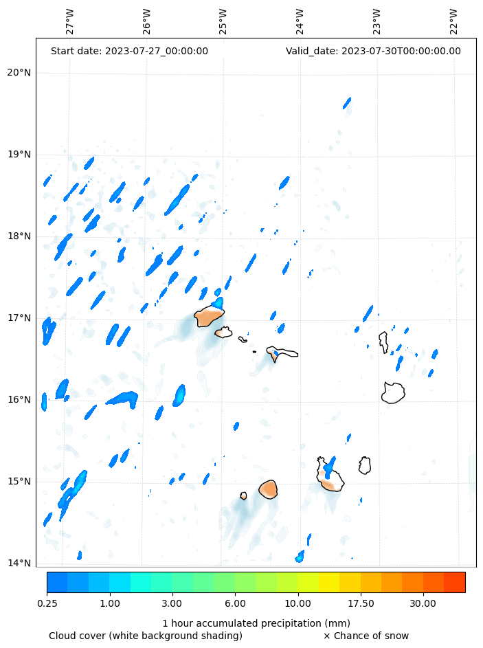 - Snow mixing ratio (g kg¯¹)
