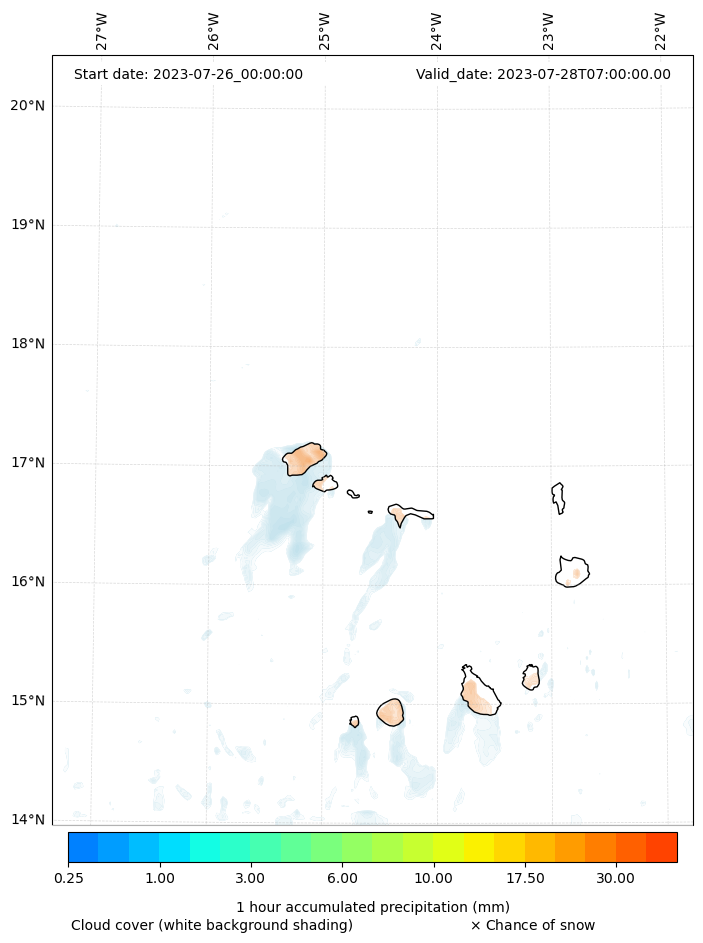 - Snow mixing ratio (g kg¯¹)