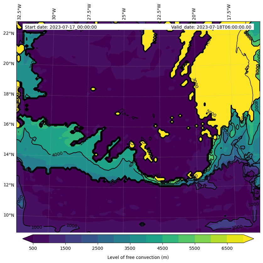- Level of free convection (m)