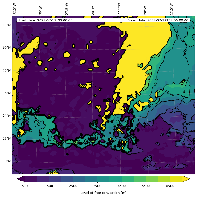 - Level of free convection (m)