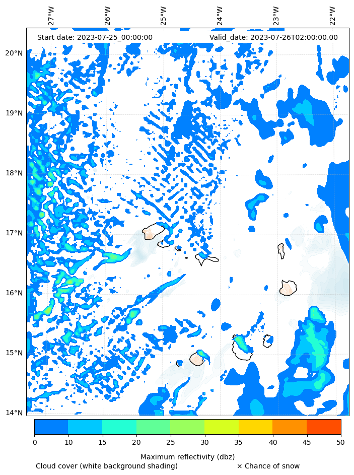 - Snow mixing ratio (g kg¯¹)