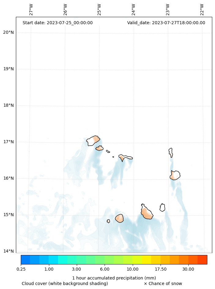 - Snow mixing ratio (g kg¯¹)