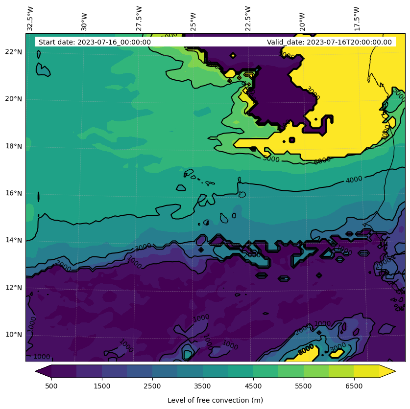 - Level of free convection (m)