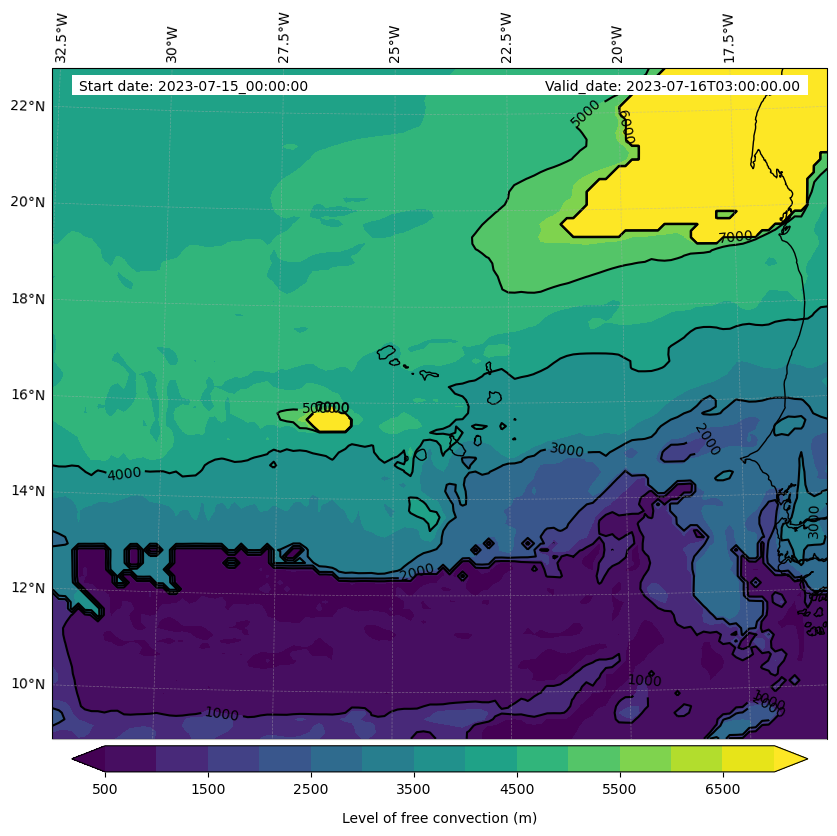 - Level of free convection (m)