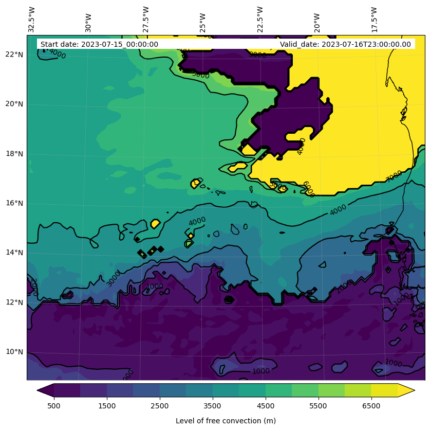 - Level of free convection (m)