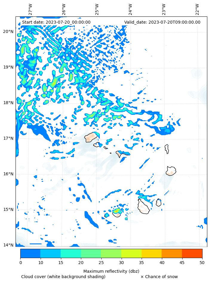 - Snow mixing ratio (g kg¯¹)