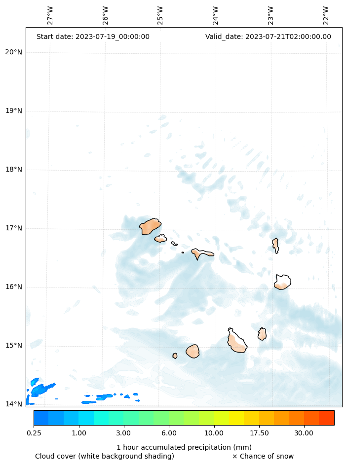 - Snow mixing ratio (g kg¯¹)