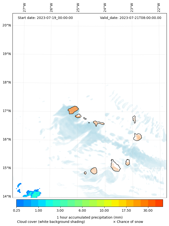 - Snow mixing ratio (g kg¯¹)